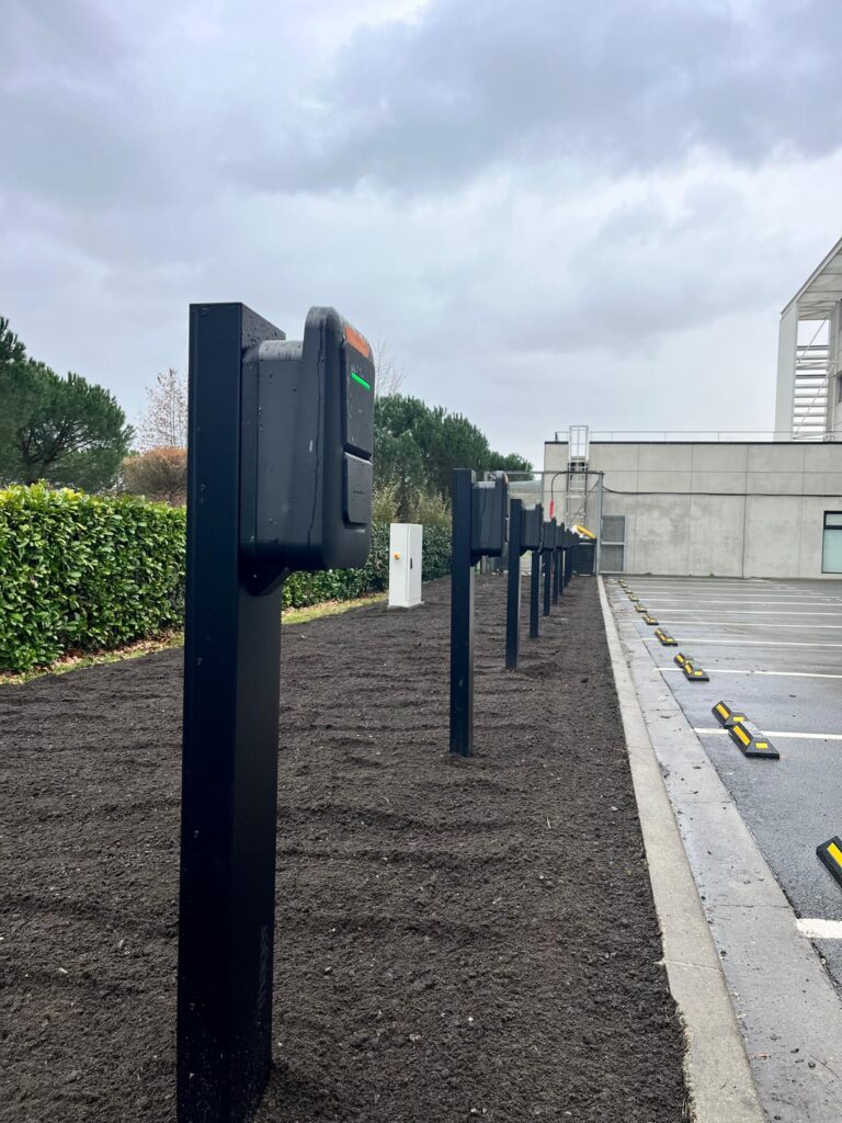 Ce projet consistait en l’installation de 10 bornes de recharge WITTY de la marque Hager, destinées à répondre aux besoins de charge de véhicules électriques sur un parking tertiaire.